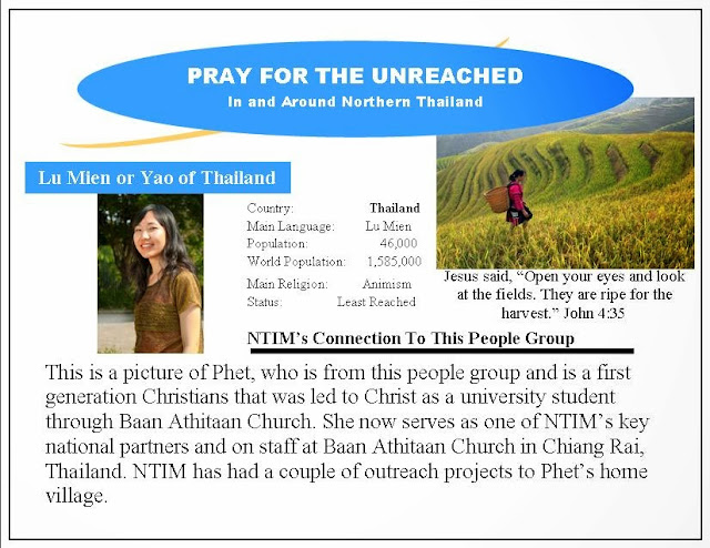 Much like the Khon Muang Unreached People Group (UPG), the Lu Mien UPG is one of the least reached peoples in the world and are all around where we live right here in the heart of Northern Thailand. God is allowing us to play a small part in reaching some from this UPG including one of our awesome partners in ministry many of you know as Phet.